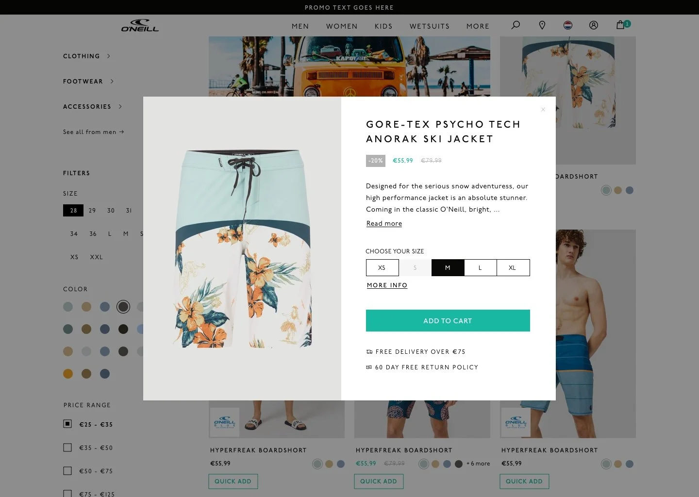 O’Neill’s first European presence, established on Shopify